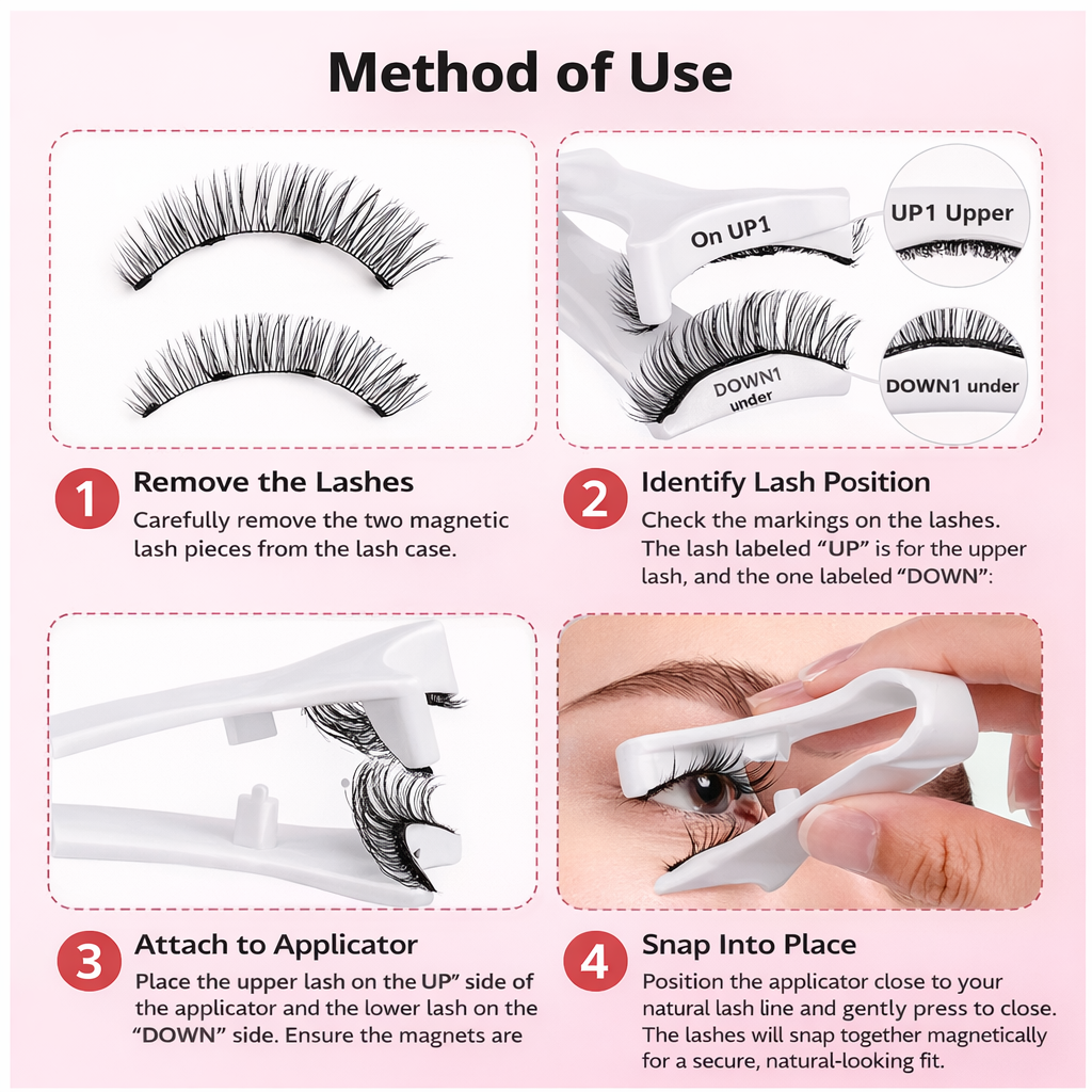 Glue lashes pull on your natural lashes every time you remove them. These use magnets, so there’s no tugging or damage.